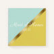 Modern light blue and yellow with gold wedding keepsake notebook, personalised for the Maid of Honour. The back of this notebook has the bride's and groom's names and wedding date.
