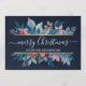Light Blush Pink Floral Foliage On Dark Blue Holiday Card
