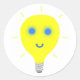 Happy, smiling yellow light bulb, with blue eyes and an arrow smile added, is printed on round stickers. Thank you for shopping at CherylsArt on Zazzle.