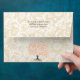Pale Coral Heart Leaf Tree with Two Whimsical Doves Flying On a Swirly Faux Burnt Parchment Card