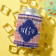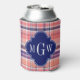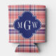 Light Coral Navy Wht Preppy Madras Monogram Can Cooler