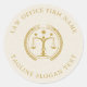 Light Cream Linen Texture Gold Logo Custom Text Classic Round Sticker