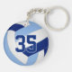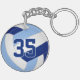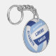 This team colours volleyball themed keychain for girls or boys features the realistic image of a volleyball that has light and dark blue and white panels, upon which you can customise the player's name and court position, plus school or club name and mascot name on the front and jersey number on the back - by katz_d_zynes