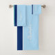 Create your own custom, personalised, cool, classy, stylish, classic, baby blue dark navy blue teal and white racing stripes design, modern elegant white typography / script monogram, trendy, machine washable, bath towel set that includes 30" x 60" bath towel, 16" x 28" hand towel and 13" x 13" washcloth. To customise, simply type in your name / monogram / initials / family name. Makes a great custom gift for birthday, fathers day, mothers day, wedding, graduation, christmas, holidays, new years, and more, for your loved ones, kids, grandkids, mum, dad, grandpa, grandma, brother, sister, son, daughter, uncle, aunt, husband, wife, bride, groom, friends and family.