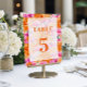 Light Faded Pink Orange Floral Table 5 Wedding Number