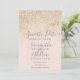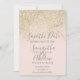light gold glitter blush pink elegant grey typography wedding save the date