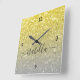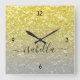 Light gold grey ombre faux sparkles Custom name Square Wall Clock