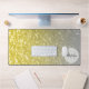 Personalise girly desk mat with your name and initial. Unique cool workspace for her office, room, work, workshop, gaming room.. Light ultimate grey illuminating yellow sparkles. Beautiful girly light gold yellow grey faux glitter sparkles. Please note we use photo of sparkles not actual glitter!