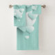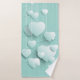Light green background with 3D white hearts Bath Towel Set