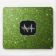 Light green greenery glitter sparkles Monogram Mouse Pad