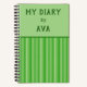 Give your diary the professional treatment with a real title and byline! Design features the title and author credit on a green background above a section of vertical stripes in coordinating shades. The back has the same stripes in a paler palette.