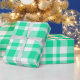 Wrapping paper with green plaid pattern. ©Janet Palaggi