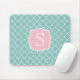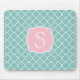 Light Green Quatrefoil Pink Monogram Mouse Pad