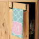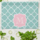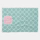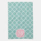 Light Green Quatrefoil Pink Monogram Tea Towel