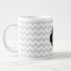 Light Grey White Chevron Black Quatrefoil Monogram Large Coffee Mug