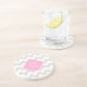 Light Grey White Chevron Pink Quatrefoil Monogram Coaster