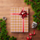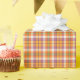 Gift wrap with a bright Halloween plaid pattern in shades of golden orange, lime green, purple and cream. A Plaidwerx original tartan design.