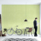Unique honeydew green wallpaper with an abstract pattern imitating giraffe spots.