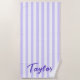 Add her name to create your own classic cabana striped beach towels in a light lavender and white for a bridesmaid.