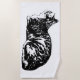 An airy drawing of a loafed tabby brings calm energy to travel days. The high-contrast silhouette stays readable on sand or deck. Gift it in winter and dream of summer.