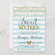 Chic sweet sixteen birthday invitation with mint green and white stripes and gold glitter accents.
