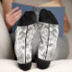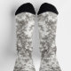 Socks with a light monochrome toile pattern that has a depth like carved marble in the shade.