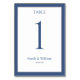 A classic navy blue and white wedding table number card that can be customised with any table number. The graphics appear on both sides of this card.