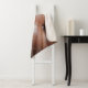 Light on brown leather sofa surface, textureabstra sherpa blanket