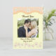 Light Orange Six Petal Flower Thank You Flat Card. The Front has valance with a lace image. Personalise this template with your information. Edit it for more changes. Change this for any occasion, anniversary, Valentine's Day, etc.