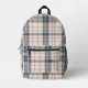 Light Peach Plaid Tartan Check Monogram Initials Printed Backpack