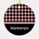 Add a persons name to this charming light pink and black diamond patterned ornament. A great keepsake.