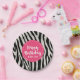 Light Pink and Black Zebra Stripe Birthday Party Paper Plate
