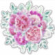 Delicate watercolor bouquet of lush light pink and purple peonies with green and turquoise leaves.