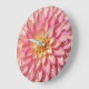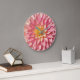 Brighten up any room with this round stylish wall clock with white numerals that features the photo image of a light pink Dahlia flower. A lovely, floral design! Use to decorate a living room, dining room, kitchen, bedroom, or any other room. Select your wall clock size and style along with clock hand colour.