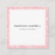 Square, white, professional business cards or personal profile cards with light pink printed glitter borders. Customisable name and title/company name on the front. On the back are customisable template fields for name, title/company name/speciality and contact information. A minimal and classy design for women.