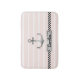 Modern bathmat with grey watercolor anchor on a light pink & white striped background. You can also personalise the design with custom text under the anchor.