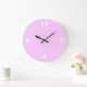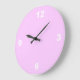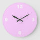 A simple wall clock with a light pink background and large white numbers marking the 12, 9, 6 and 3. For any pink decor room. Click Customise It to add your custom text, change background colours and more.