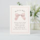 Hand painted bow with subtle plaid in light pink and ivory; editable text, border and background colour on front and back. Add a QR code if desired to the backside for registry, website etc