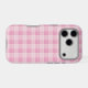 Preppy pastel pink plaid pattern iPhone case.