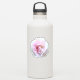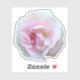 A close-up photo of a beautiful light pink rose with a template for first name on one of the petals.