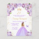 This elegant and glamourous birthday party invitation features a beautiful princess with blonde hair in a light purple ball gown. The text combines handwritten script and modern sans serif fonts for a classy and sophisticated look. The floral arrangements, butterfly and gold confetti create the perfect blend of rustic and chic.