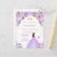 This elegant and glamourous sweet sixteen birthday invitation features a beautiful princess with brown hair in a light purple ball gown. The text combines handwritten script and modern sans serif fonts for a classy and sophisticated look. The floral arrangements, butterfly and gold confetti create the perfect blend of rustic and chic.