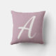 Simple cute monogram pillow in light purple with a large modern script letter.