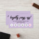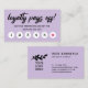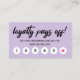 Light purple loyalty punch card for six visits with loyalty pays off in a modern brush script and a hot pink star marking the sixth visit. Light purple loyalty punch card personalised with your logo on the back along with contact info and business name. Charming loyalty punch card in purple for a makeup artist, nail artist, beautician, hair stylist, and more.
