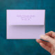 Light purple wedding envelopes with your address already printed are easy to personalise with other sizes available. While the colour is adjustable, this envelope is complimentary to lavender & lilac wedding colour palettes. Couple's initials on the front adds a personal touch. A2 Note Card (fits 4.25" x 5.6" card)