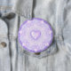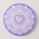 light purple snowflake & glittering heart 10 cm round badge