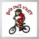 Who says girls can't ride BMX bikes? Just say "Girls Can't WHAT?" and show you can with Girls Can't WHAT? BMX gear. Makes a great gift for girls of all ages!
