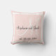 Personalised Pink, Black and White monogrammed pillow with bride and groom names and wedding date in decorative script.Solid tan coloured background. Makes a great gift for newly weds. Elegant,trendy, accessory for your bedroom, favourite chair,or any room in your families home. Customise with your names, monogram initial and wedding date. Available in 100's of colours monogram, letters, initials, elegant, monogrammed, wedding, names, "bride and groom", wedding, chic, "wedding keepsake", home decor, trendy, white, grey, pillows