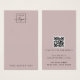 Light rose taupe or custom colour vertical earring product display card with custom logo and QR code. Elegant minimal design.