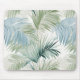 Light Sage Green Pale Blue Palm Leaves Patterned Mouse Pad
